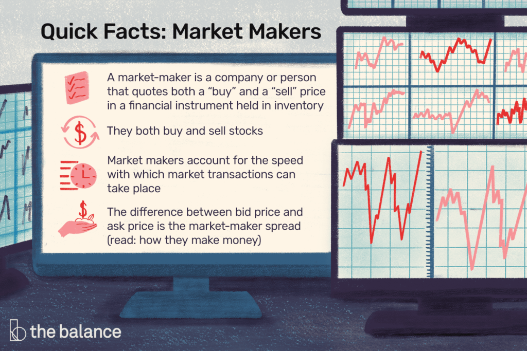Cada acción o valor necesita un mercado de compradores y vendedores para poder moverse en las bolsas. Los creadores de mercado son comerciantes de alto volumen que literalmente "crean un mercado" para los valores al estar siempre listos para comprar o vender. Se benefician del diferencial de oferta y demanda y benefician al mercado al agregar liquidez.