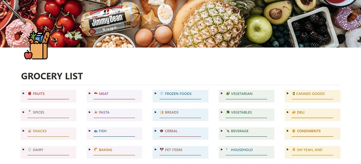 Vous n'avez pas besoin d'écrire votre liste sur papier chaque fois que vous devez faire vos courses. Vous pouvez organiser vos courses en remplissant ce modèle Notion de liste de courses.