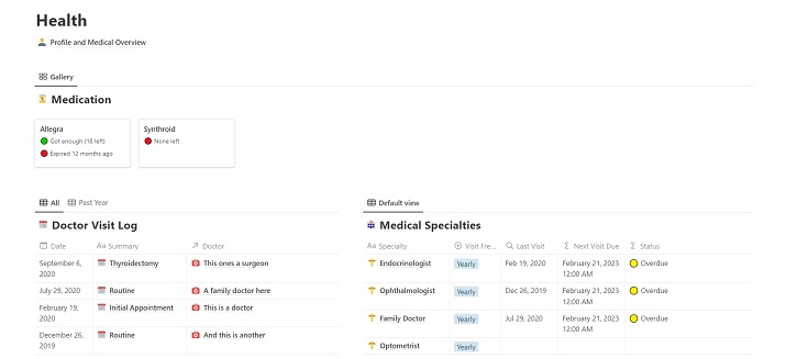 Garder une trace de votre santé n'a pas à être compliqué. Avec ce Notion Health Tracker, vous n'avez pas à vous soucier de perdre vos dossiers médicaux, de prendre du retard sur vos médicaments ou de manquer des rendez-vous chez le médecin.