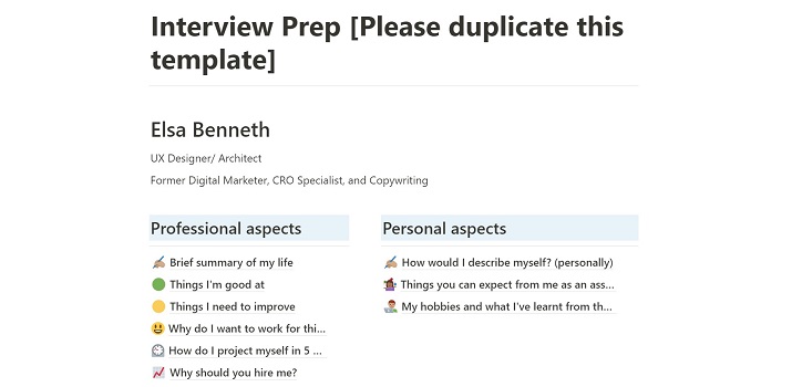 Vous pouvez ajouter des détails sur votre vie personnelle et professionnelle que vous souhaitez aborder lors des entretiens, ainsi que des réponses pratiques aux questions d'entretien courantes et aux questions que vous pouvez poser à la fin de l'entretien.