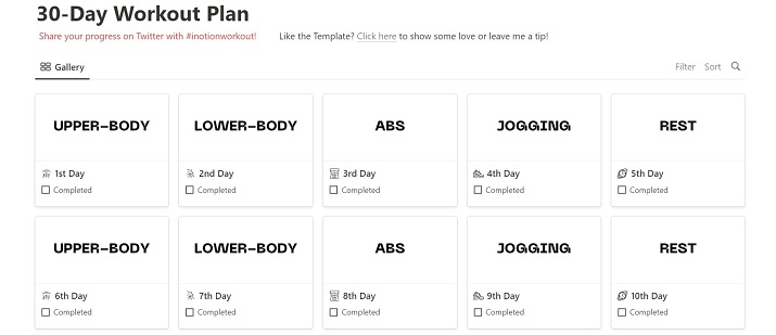 Ce modèle Notion est conçu pour les amateurs de fitness qui souhaitent garder un œil précis sur leurs progrès, leur historique d'entraînement et leurs objectifs de fitness.