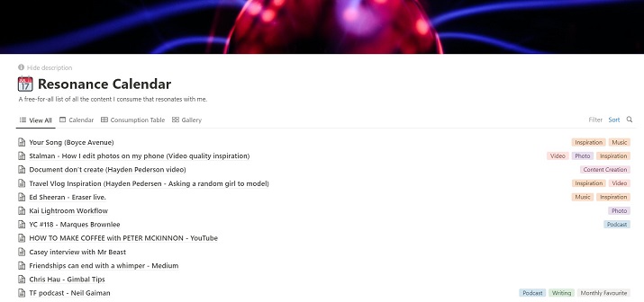 Créé par le maestro de la productivité et populaire YouTube, le Dr Ali Abdaal, le calendrier Resonance est l'un des meilleurs modèles Notion gratuits pour le développement personnel que vous pouvez utiliser.