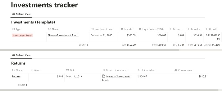Il garde une trace de vos liquidités investies et des rendements générés, de la valeur liquide actuelle, de la croissance annuelle moyenne, de la croissance totale, des investissements connexes, du type d'investissement, etc. Ainsi, vous saurez toujours quels investissements sont sous-performants ou payants.