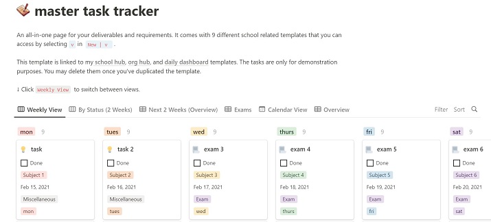 Avec ce modèle Notion de suivi principal, vous pouvez facilement hiérarchiser les tâches et mieux gérer votre temps afin que tout votre travail soit terminé et rendu à temps.