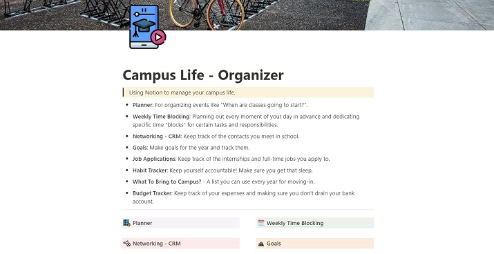 Ce modèle Notion vous aide à rester au courant de tout ce dont vous avez besoin pour avoir une vie de campus équilibrée et réussie.