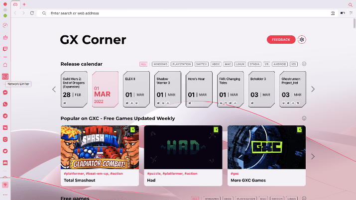 Opera GX dispose d'un coin de jeu qui vous permet de voir les prochaines sorties de jeux, d'obtenir des jeux gratuits et de voir les actualités sur les jeux. Le GX Corner est également disponible sur Opera pour mobile.