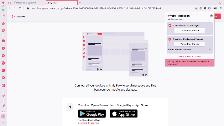 Bien que ce soient des fonctionnalités que le navigateur Opera standard ne possède pas, Opera GX ne manque pas non plus des fonctionnalités impressionnantes auxquelles les utilisateurs d'Opera sont habitués. Par exemple, il a un VPN intégré, et il vous permet de bloquer tous les cookies et traceurs.