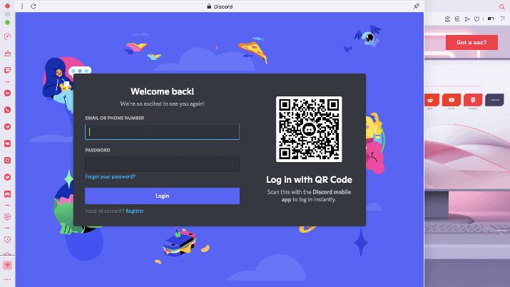 Sur le côté gauche du navigateur, vous pourrez ouvrir ou fermer Twitch ou Discord.