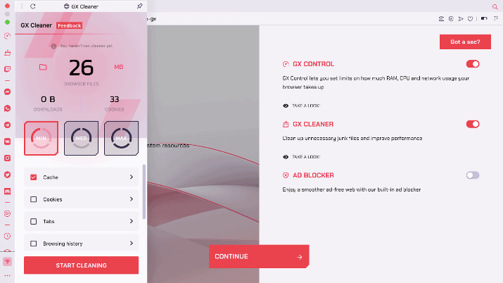 Opera GX vous permet de définir une limite pour la quantité de chacun des trois que le navigateur peut utiliser. Cela ne signifie pas que vous ne pouvez plus effectuer plusieurs tâches à la fois.