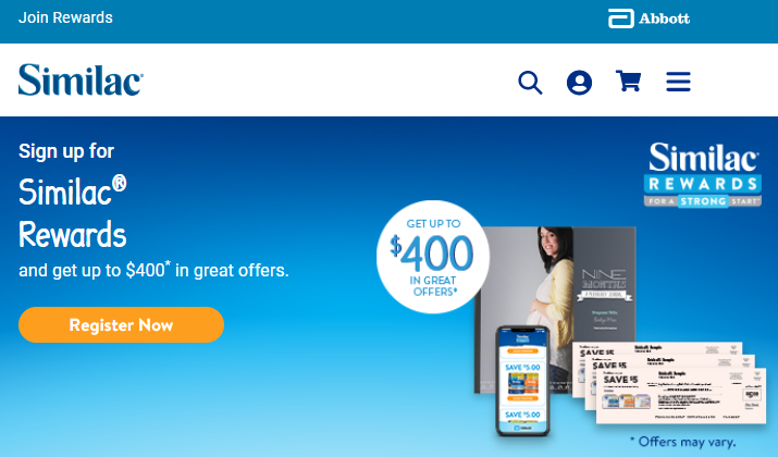 Ce site Web propose des échantillons gratuits de préparations pour nourrissons, des biberons pour nouveau-nés et une boîte de coupons gratuits. La société propose des échantillons gratuits de formule de transition pour les tout-petits ainsi qu'un ensemble gratuit de badges pour le ventre, des conseils d'experts et des offres spéciales.